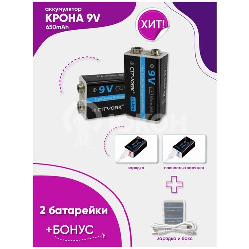 Аккумулятор Крона 2шт / Батарейка Крона / Батарейка крона 9v/CITYORK