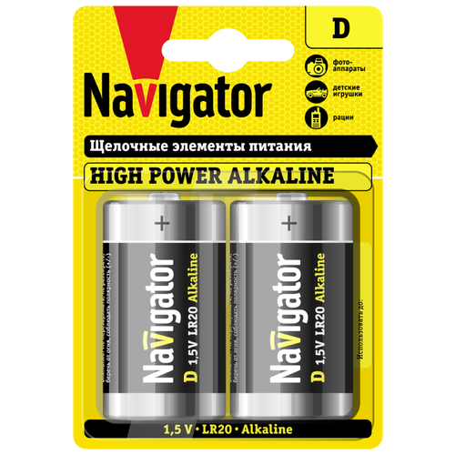Элемент питания алкалиновый 94 755 NBT-NE-LR20-BP2 (блист.2шт), NAVIGATOR 94755 (1 упак)