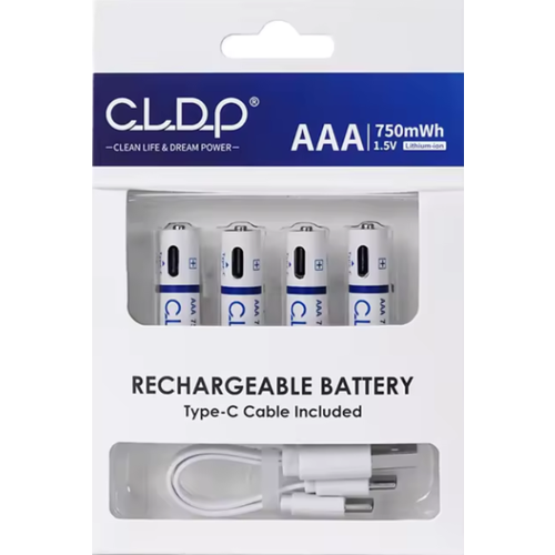 Аккумуляторные батарейки ААA 1,5 v 750 mWh с зарядкой от USB кабеля, 4 шт.
