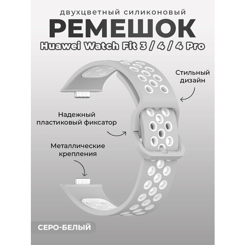 Двухцветный силиконовый ремешок для Huawei Watch Fit 3, серо-белый