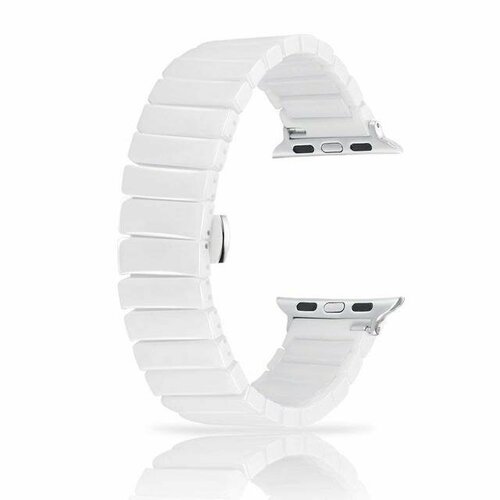 Блочный керамический ремешок для смарт часов Apple Watch 1-8, SE 38-40-41 мм / Керамический браслет на Эпл Вотч 1, 2, 3, 4, 5, 6, 7, 8, СЕ / Белый