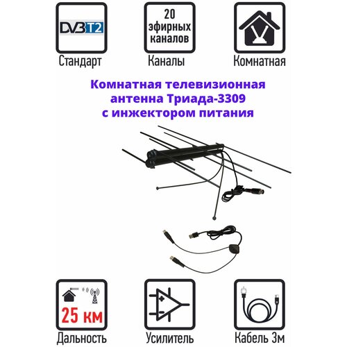 Комнатная цифровая активная направленная телевизионная антенна Триада-3309 с инжектором питания
