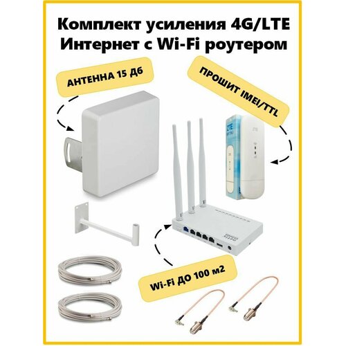 Интернет на дачу готовый комплект с 4G антенной KROKS mimo 2*2 15dBi + 4G модем + wifi роутер