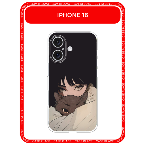 Чехол на Apple iPhone 16 / Айфон 16 с принтом Аниме девушка с котиком