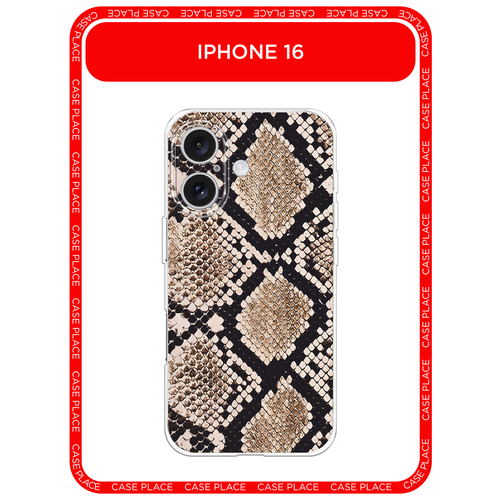 Чехол на Apple iPhone 16 / Айфон 16 с принтом Кожа змеи бежевая