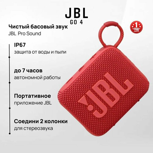 Беспроводная колонка JBL GO 4, IP67, 4.2 Вт, (JBLGO4RED)