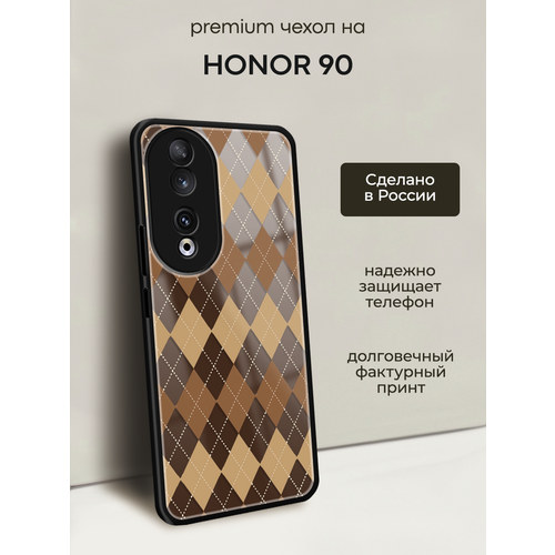 Чехол на Honor 90 / Хонор 90 с объемным принтом "Бежевые ромбы паттерн"