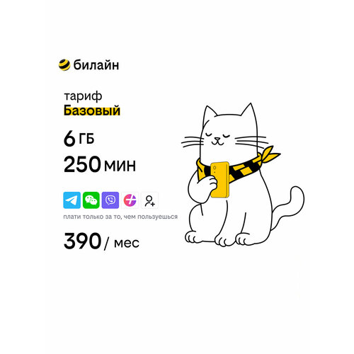 Сим карта sim-карта билайн тариф "Базовый", Еврейская АО, 6 ГБ, 250 мин, баланс 300 р.