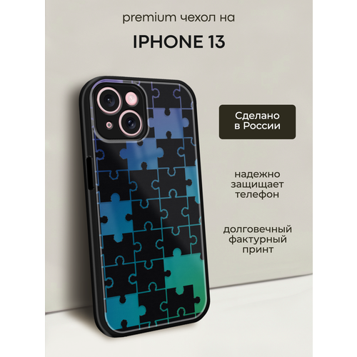 Чехол на Apple iPhone 13 / Айфон 13 с объемным принтом "Синий пазл"