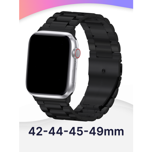 Блочный ремешок для Apple Watch 42-44-45-49 mm, Series 1-9, SE, Ultra / Сменный металлический браслет для часов Эпл Вотч 42-49 мм / Черный