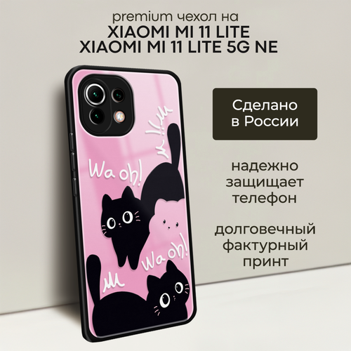 Чехол на Xiaomi Mi 11 Lite/Mi 11 Lite 5G NE / Сяоми Ми 11 лайт/Ми 11 Лайт 5G NE с объемным принтом "Черные котики"