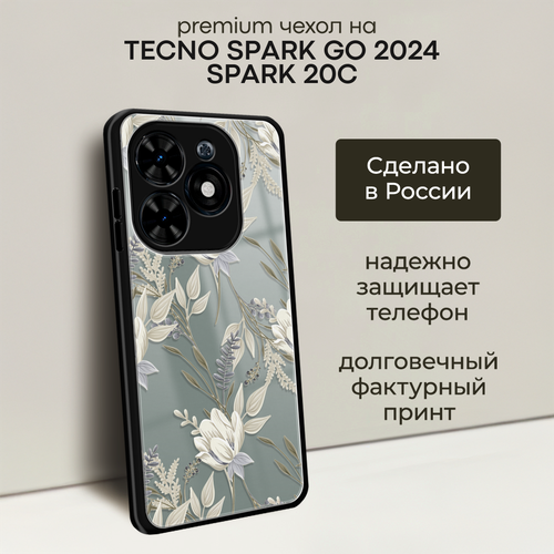 Чехол на Tecno Spark Go 2024/Spark 20C / Текно Спарк Го 2024/Спарк 20С с объемным принтом "Цветы на бежевом фоне"