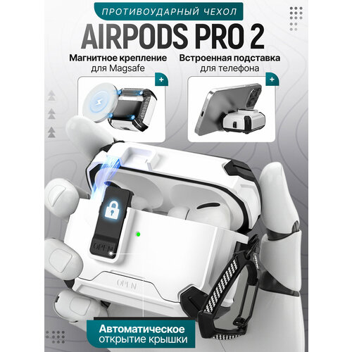Чехол для наушников AirPods Pro 2 MagSafe, с подставкой, с магнитным замком и карабином, пластик, белый