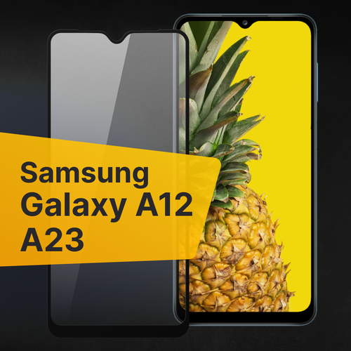 Комплект 3 шт. Противоударное защитное стекло для телефона Samsung Galaxy A12, A23 / Полноклеевое 3D стекло с олеофобным покрытием на смартфон Самсунг Галакси А12, А23