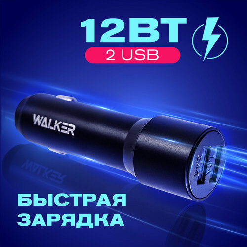 Автомобильная зарядка для телефона универсальная, 2 USB, 2.4 А, WALKER, WCR-21, черная / зарядное устройство в прикуриватель, автозарядка в машину