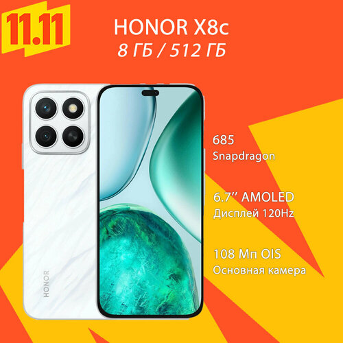 Смартфон HONOR X8c, 8 ГБ/256ГБ, 108МП OIS, экран 6,7" AMOLED, EAC (Ростест)