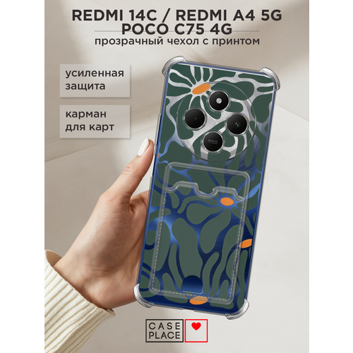 Чехол на Xiaomi Redmi 14C/Poco C75 4G/Redmi A4 5G/Poco M7 5G (Сяоми Редми 14C/Поко C75 4G/Редми А4 5G/Поко M7 5G) с картой и принтом Волнистые цветы