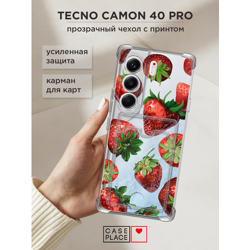 Чехол на Tecno Camon 40 Pro (Текно Камон 40 Про) с картой и принтом Сочная клубника 4
