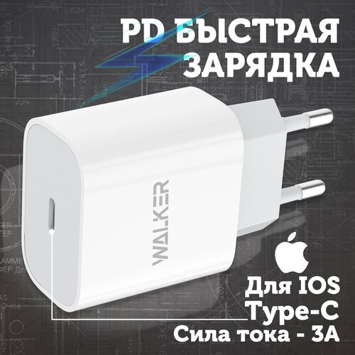Сетевой блок для телефона с быстрым зарядом WALKER WH-39, USB Type-C разъем, мощность 20W, зарядное устройство, блок питания адаптер android