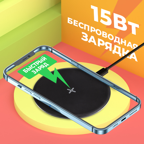 Беспроводная зарядка с кабелем Type-C, быстрый заряд WALKER WHH-52 15W, БЗУ, зарядное устройство для телефона iphone, андроид, самсунг, xiaomi, черная