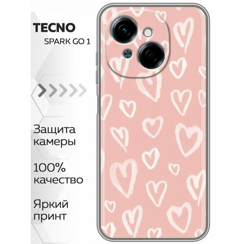 Чехол для Tecno Spark Go 1 с принтом Сердечки розовые (Техно Спарк Го 1)