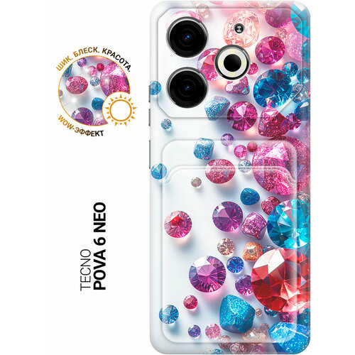 Силиконовый чехол на Tecno Pova 6 Neo с принтом "Россыпь драгоценных камней" с карманом для карты