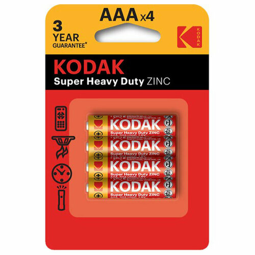 Батарейка солевая Kodak Super Heavy Duty, AA, R6-4S, 1.5В, спайка, 4 шт.
