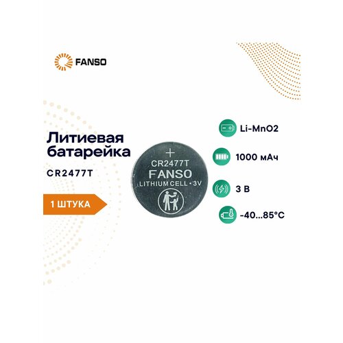 FANSO CR2477T Литиевая батарейка дисковая (таблетка; button) для приборов, счетчиков, автомобилей, Li-MnO2