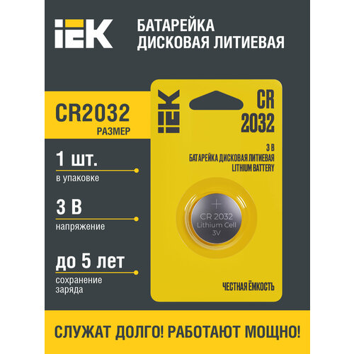 Батарейка дисковая литиевая CR2032 (1шт/блистер) IEK