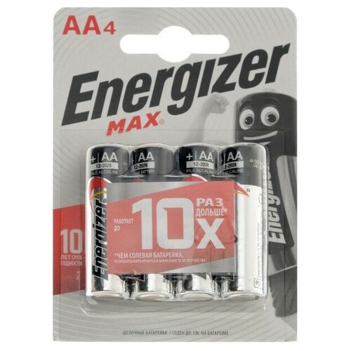 Батарейка алкалиновая Energizer Max, AA, LR6-4BL, 1.5В, блистер, 4 шт.