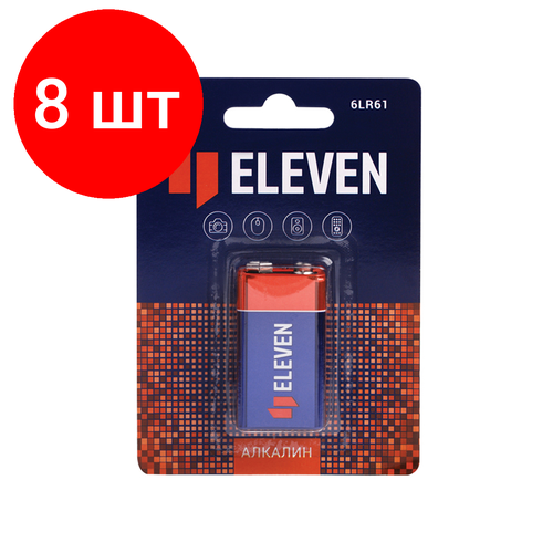 Комплект 8 шт, Батарейка Eleven MN1604 (6LR61) Крона, алкалиновая, BC1