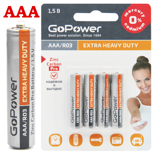 Батарейка GoPower R03 AAA Shrink 4 Heavy Duty 1.5V