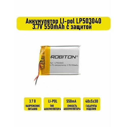 Аккумулятор LI-pol LP503040 3.7V 550mAh с защитой