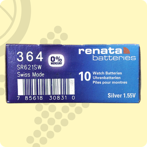 Renata 364 (SR621SW) | 1.55 Вольт, Оксид Серебра (silver oxide) батарейки - 10шт.