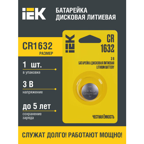 Батарейка дисковая литиевая CR1632 (1шт/блистер) IEK