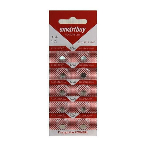 Батарейка LR66 (AG4, 377, 626) 1.5V SmartBuy Blister, упаковка 10 шт.