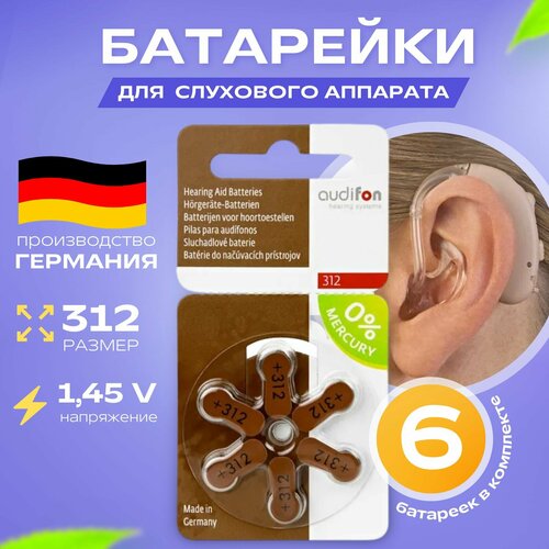 Батарейки для слухового аппарата Audifon размер 312, 1 блистер (6 батареек)