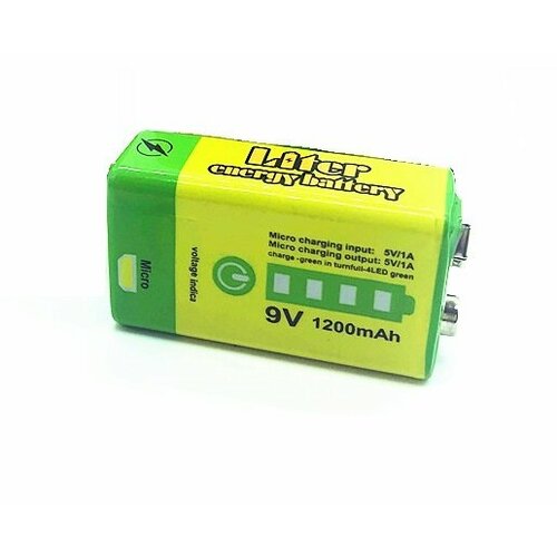 Аккумулятор Крона 9V Li-ion 1200mAh microUSB (с индикатором заряда)