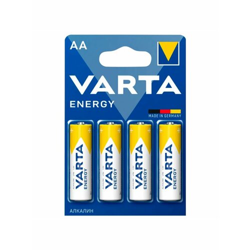 Батарейки алкалиновые "пальчиковые" комплект 4 шт, VARTA ENERGY, АА (LR6, 24А), блистер, 4106229414