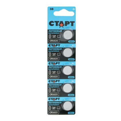 Батарейка литиевая старт, CR1620-5BL, 3В, блистер, 5 шт.