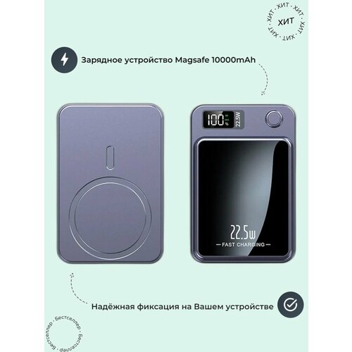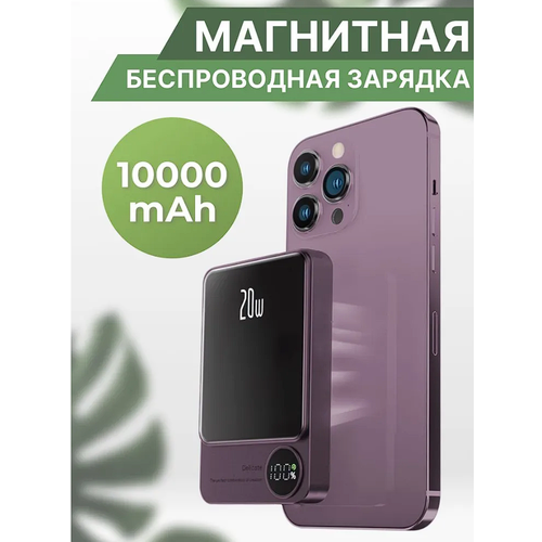 Внешний магнитный аккумулятор MagSafe/ Power bank/ Магнитная быстрая зарядка/ Повер банк 10000 мАч 15W/ Зарядное устройство для смартфона, Фиолетовый