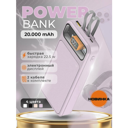 Повербанк 20000 power bank для айфона/андроид компактный Лавандовый