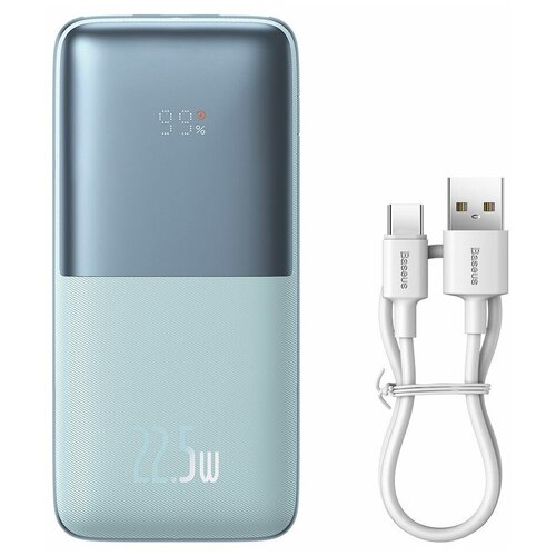 Внешний аккумулятор Baseus Bipow Pro Digital Display,10000mAh, 22.5W + Кабель USB to Type-C 3A 0.3m, Синий, PPBD040003