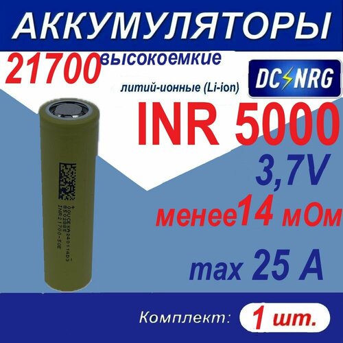 Аккумулятор 21700 INR 5000 высокоемкий 25A, менее 14 мОм, комплект 1 шт.