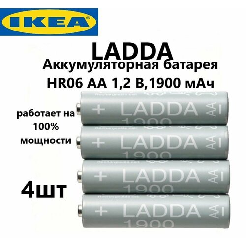 IKEA Аккумуляторная батарейка IKEA. 1900 mAh, HR06 AA 1,2 В, 4 шт. LADDA, Япония. Икеа Ладда 005.098.14
