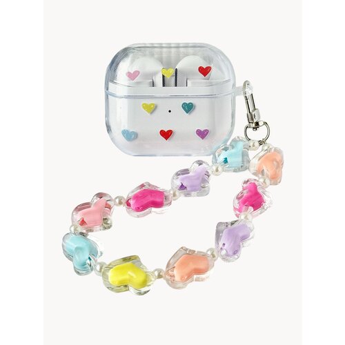 Чехол для наушников Samsung Galaxy Buds 3/3 Pro силиконовый "Сердечки" с брелком, прозрачный