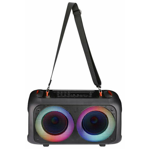 черныйВоспроизведение музыкальных файлов в формате MP3/WMA/FLAC/WAV/APE/AAC. Bluetooth. Поддержка A2DP. FM тюнер. Функция караоке. 1 вход для подключения микрофона. Регулировка низких и высоких частот, а также эхо-эффекта канала микрофона. USB разъем. Максимальная мощность: 250 Вт. Акустическая система RMS: 20 Вт. Питание: DC 5 В. Встроенный аккумулятор: 3.7 В, 1500 мАч.
