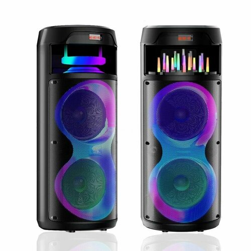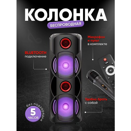 Колонка портативная bluetooth беспроводная с радио, Колонка блютуз музыкальная акустическая система с подсветкой, USB, microSD, караоке
