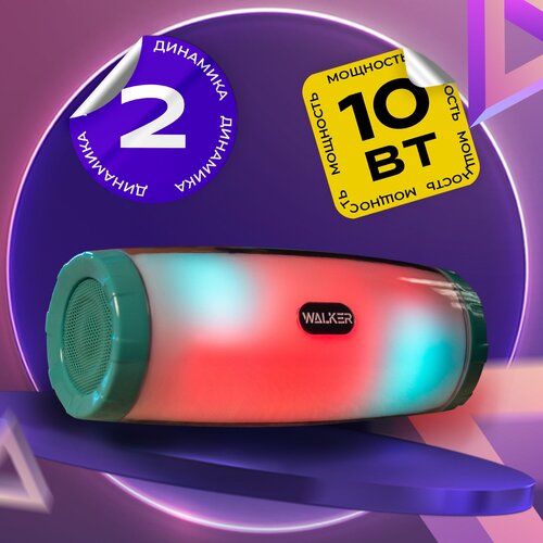 Портативная колонка bluetooth 5.0, WALKER WSP-120, 2 динамика по 5Вт, блютуз, с подсветкой беспроводная, колонка музыкальная как jbl акустика, голубая
