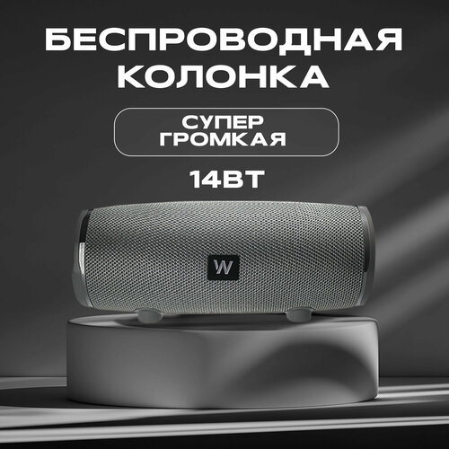 Колонка беспроводная музыкальная Bluetooth, WALKER, WSP-180, переносная портативная блютуз система для компьютера, аудиотехника и телевизора, серая
